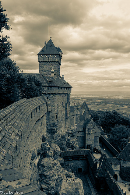 De retour en Alsace, j’ai planifié une énième visite au château du Haut Koenigsbourg qui domine les grands crus de la région. Parking bondé, ciel nuageux, un sac remplit d’objectifs, c’est mon Sigma 18/35 et mon Fish-eye qui seront les seuls sollicités. La lumière était parfaite, la foule peu gênante, mais arrivé à la maison, déception: au milieu de ma série de photos, j’ai basculé par erreur du RAW au Jpeg, une fonction directement accessible sans entrer dans les menus (mais quelle mauvaise idée monsieur Nikon). Du coup, il faudra que j’y retourne, pas question reprendre des photos sous Ligthroom en Jpeg, L’intérêt est quasi nul.