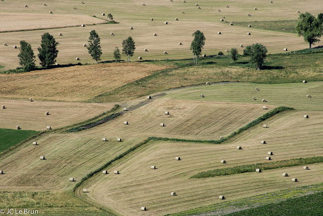Toujours à 1500 m d’altitude, entouré de champs, je me suis essayé de nombreux soirs, à la photo de la meule de foin dans le pré, sans succès, pourtant c’est un classique. Et un matin, en prenant de la hauteur, sur la montagne grise qui domine le village, je vois devant moi des champs remplis de meules à perte de vue, je tenais mon image.