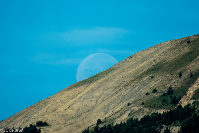La quatrième photo a été prise dans les Alpes de Haute Provence, un matin. La lune se couchait derrière la montagne. J’ai sorti mon Samyang 500 mm en catastrophe et fait la mise au point sur la montagne, c’était plus simple.