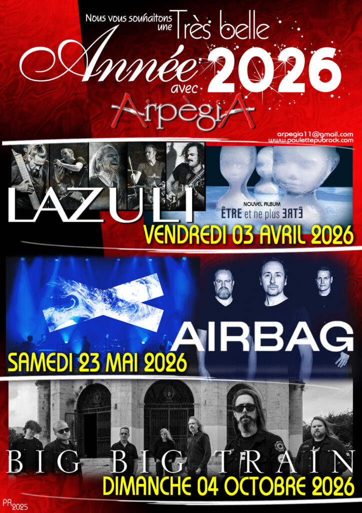 D’ici là portez-vous bien, achetez vite vos billets pour Lazuli, Airbag et Big Big Train Chez Paulette.